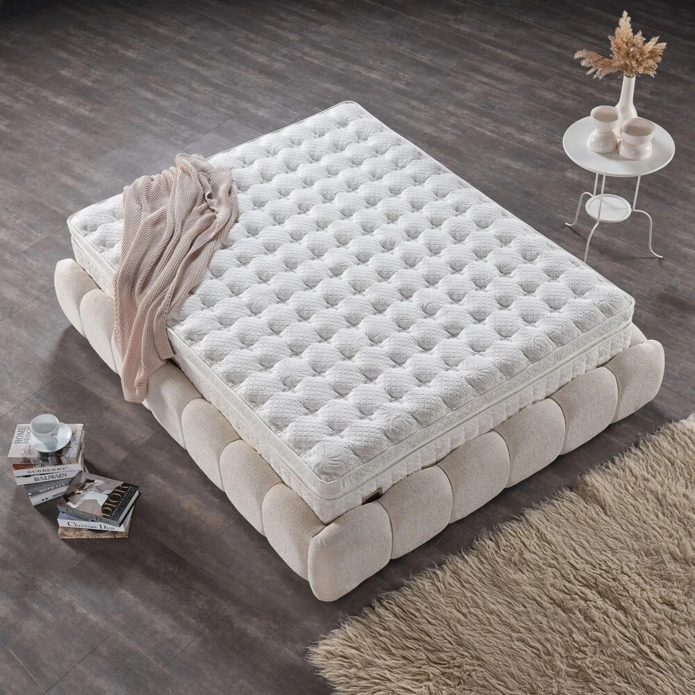 Peluş kumaşın yumuşak dokusu sıcak bir kucaklama hissi yaratırken, Visco katmanı basınç noktalarını hedef alarak vücuda etkili bir destek sağlar.