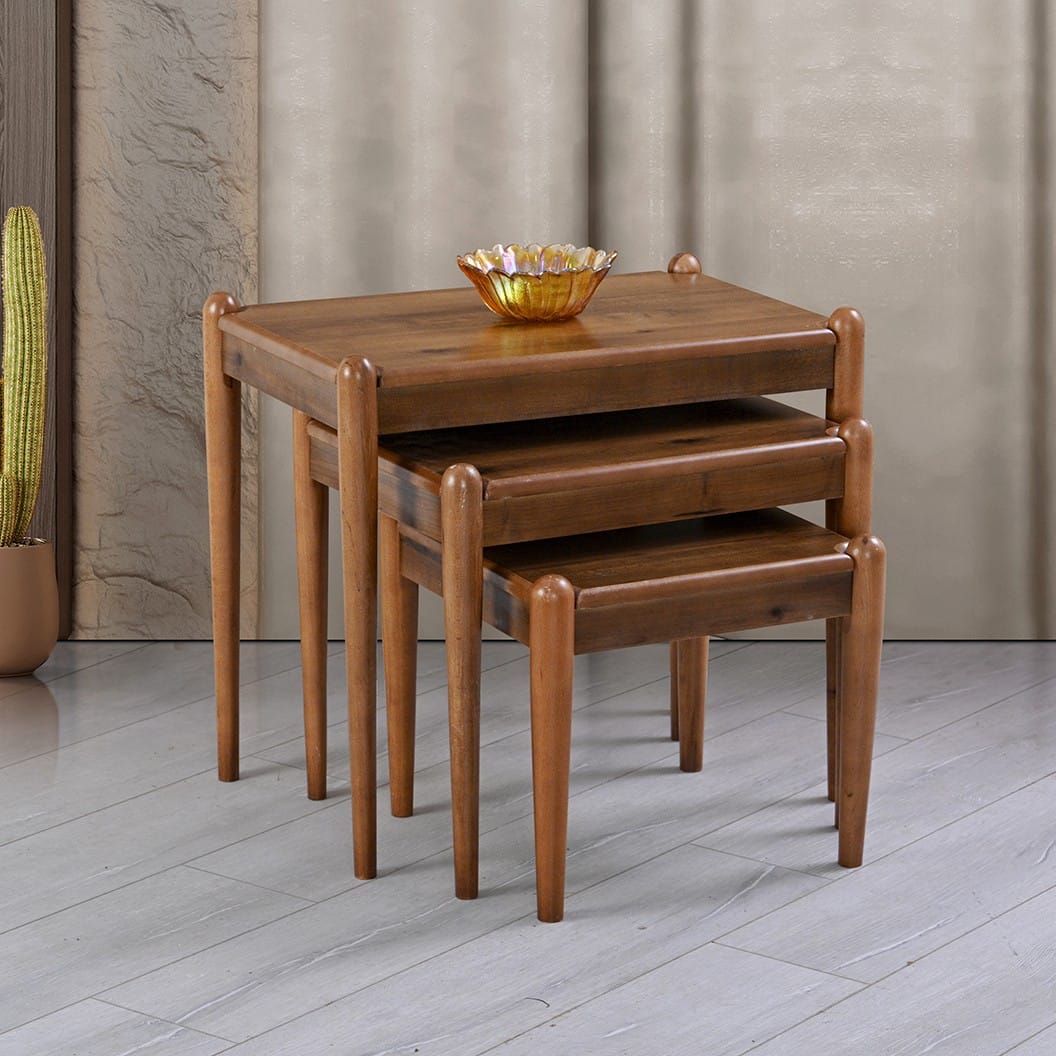 Defne Serisi Ceviz Ahşap Renk 1.sınıf Kayın Ağacından Tasarım Dikdörtgen 3’lü Zigon Sehpa