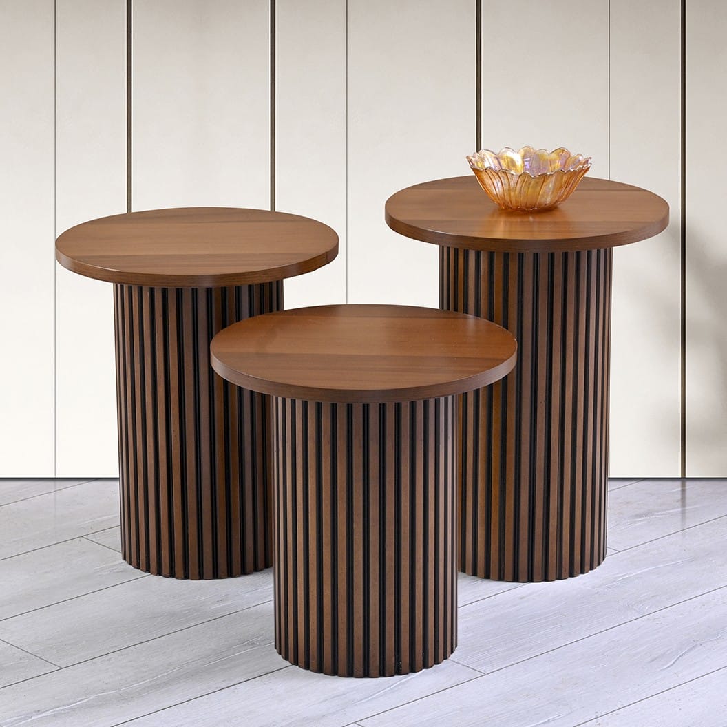 Kapı Suyu Serisi Ceviz 1.sınıf Yuvarlak Modern 3’lü Zigon Sehpa